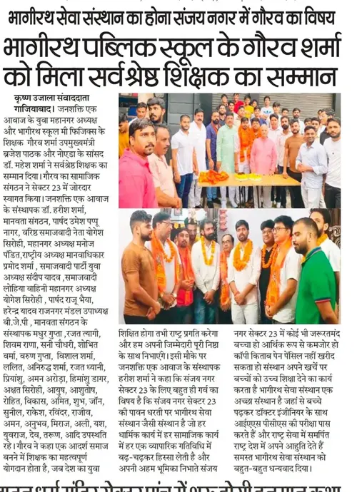 In 1975, Bhagirath Sewa Sansthan was established under the Society Registration Act of 1860, comprising a senior secondary school in Ghaziabad, a school for differently-abled children, an old age home, and a drug de-addiction and rehabilitation center across various districts of Uttar Pradesh. Bhagirath Public School, one of the top 5 schools in Ghaziabad 2024, offers classes from nursery to 10+2 and is considered one of the best CBSE schools in the area.